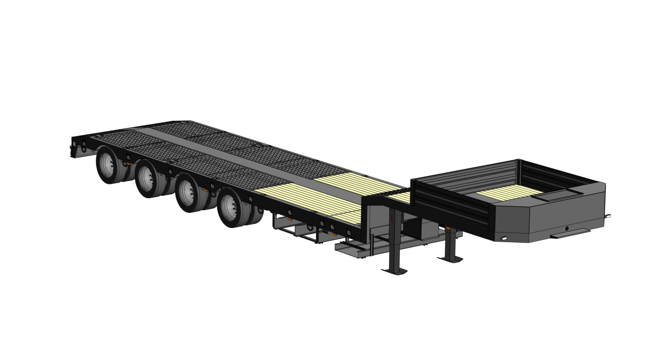 - Трапи для заїзду техніки на трал иготовлений з алюмінієвого сплаву АМг6 або Д16 який широко застосовується у машинобудуванні та забезпечую високу корозійну стійкість, пластичність, міцність (АМг6 - 300 ÷ 340 МПа, Д16 – 430 ÷ 470 МПа) добру зварюваність. Довжина трапу 2400 мм. Під час руху напівпричепа трапи зберігаються в спеціальних карманах розташованих з лівої сторони в передній частині напівпричепа під основною платформою.